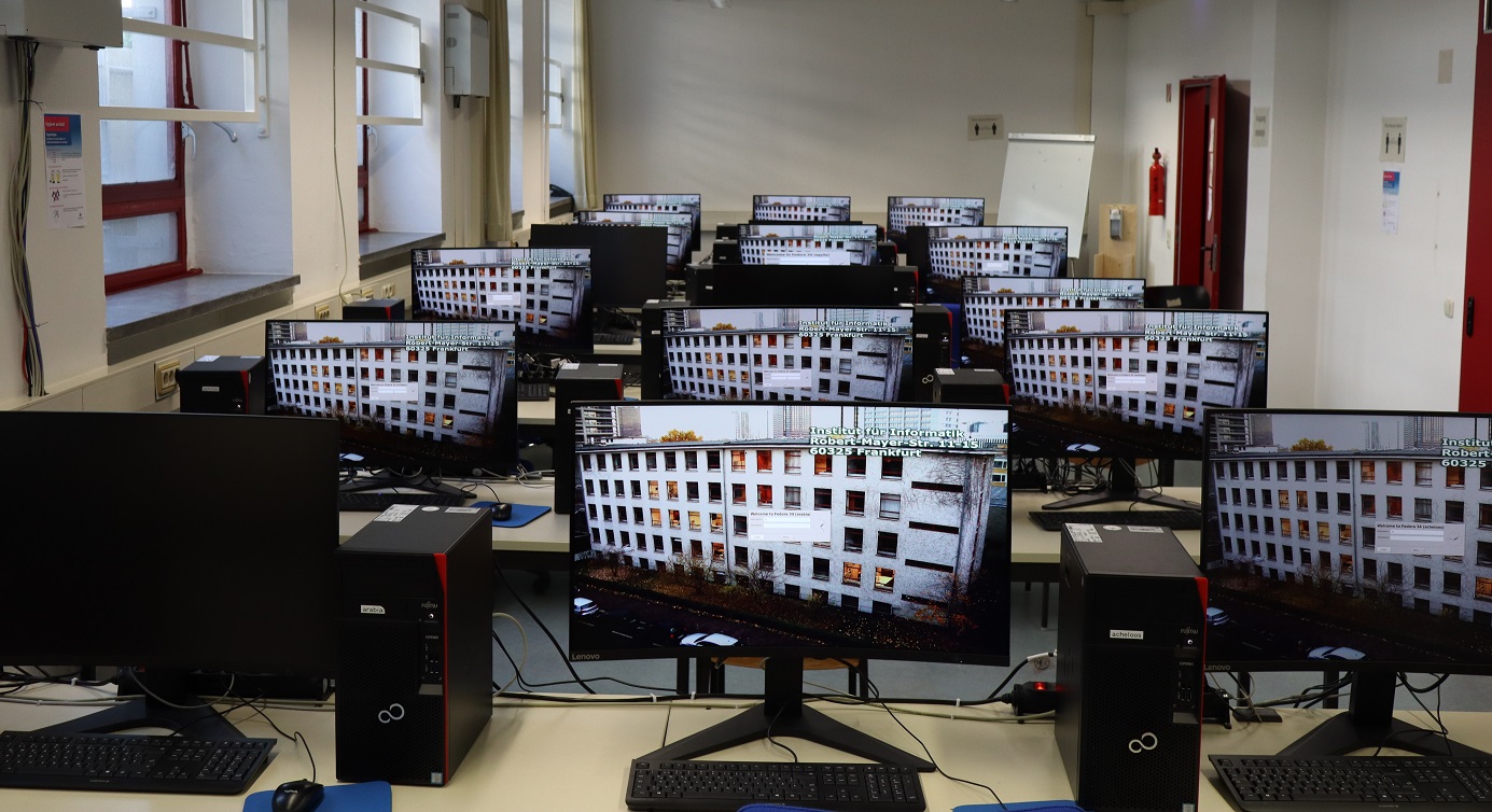 Das Computer-Lab (R026) im Kellergeschoss des Informatikgebäudes bietet 21 Computerarbeitsplätze, sowie einen Beamer und ein Flipchart. Hier finden auch einige Lehrveranstaltungen statt, die natürlich Vorrang in der Nutzung haben.