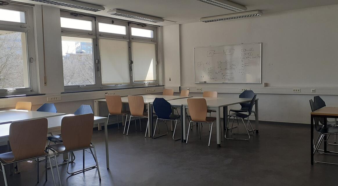 Die Seminarräume stehen außerhalb ihrer Belegungszeiten auch zum ruhigen Arbeiten zur Verfügung. Hier gibt es Tische und Stühle, Tafeln, W-Lan (eduroam) und Steckdosen.