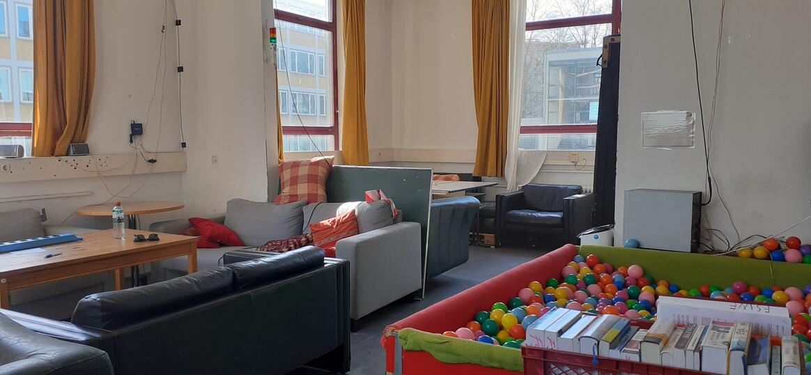 Die Fachschaftslounge bietet dir Sofas, Tische, Steckdosen, W-Lan (eduroam), eine Tafel und einen Bällepool (um sich vom Lernen zu erholen).