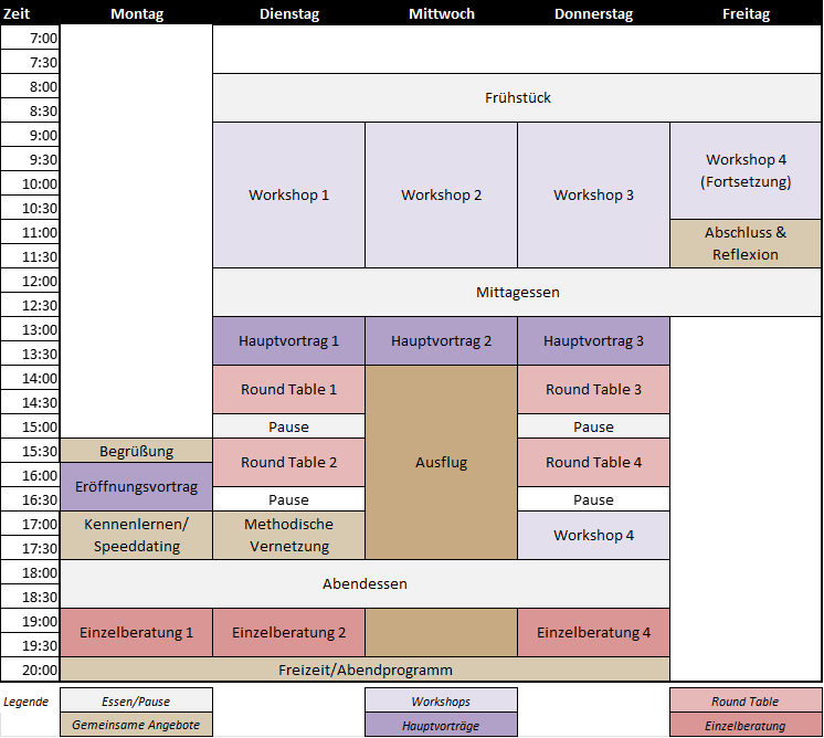 Die Workshops bilden das zentrale Veranstaltungsformat der Nachwuchskonferenz. Du kannst an bis zu vier Workshops teilnehmen. Da die Kapazitäten begrenzt sind, können bei der Anmeldung nur Präferenzen angegeben werden.